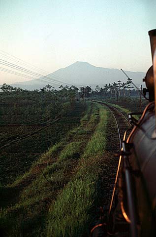 As the sun rose a little higher, the magnificent Gunung Slamet - at over 3400 metres, Java's second highest volcano after Semeru - provided one of my favourite footplate shots of all time. I even still have the scar from when the loco lurched and my bare arm was thrust against a hot pipe.
