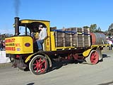Ray Gardiner reports on the 50th Echuca Steam Rally which was held over the Queen's Birthday long weekend, 8th - 9th June 2013. Echuca is located on the Murray River, which is the border between NSW and Victoria. Once it was a major port on the river with a rail connection to Melbourne. The port is now the historic centre of the town and draws many tourists to the area. The port now has the most steam powered paddle steamers in operating condition in the world and there are normally about 3 in steam each day. The wharf has a good museum with a number of portable engines and stationary steam engines. At present a new interpretive centre is being built so access to the stationary engines was not possible. On Sunday morning a steam train arrived behind 4-6-4 R761 leaving Monday morning after posing for photos with 2 steam rollers and a steam wagon. The rally is held at Rotary Park several km from the port. The rally had very good weather with large crowds in attendance. As well as the steam powered machinery there were many vintage cars, tractors and military vehicles. and oil engines. There were also displays of horses sheep dogs and wood chopping. The Campaspe Model Engineers have a 5'' & 7.25'' track onsite which was very busy. The Echuca rally normally has some rare steam exhibits on display, with 2 Leyland steam wagons, one in operating condition 8 ton built 1925 with the 5 ton one undergoing a slow restoration. New this year was a ''Comet'' 3hp portable built by S Williams, Brisbane, the company being better known for windmills. Several years ago there were also several JJ Seeking portables, also very rare. Unfortunately the Case tandem compound traction engine with steam powered steering was not working this year. There were 13 traction engines, 6 road rollers, 6 steam wagons, 8 portables, 1 fire engine, 1 steam launch and a replica Locomobile steam car. There were several stationary engine including a G Walker, Stroud single cylinder horizontal recently restored. The Shand Mason fire engine was used on Sunday for the annual burning of the dunny. There are more pictures of this event on the Traction Talk Forum http://www.tractiontalkforum.com/showthread.php?t=27394, but those showing individual engines are linked below too. We would welcome picture to fill the gaps and also further information on the engines. Click on a thumbnail to see the full size picture, then click the picture to return to this page. Traction Engines