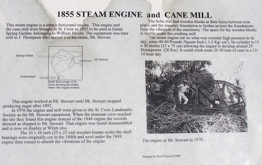 Thomas Kautzor writes about St. Croix: On February 28th 2013 I made a day trip to St. Croix, in the Leeward Islands. St. Croix, together with the islands of St. Thomas and St. John initially formed the Danish West Indies until 1917, when they were sold to the U.S. for the sum of U$25 million and became the United States Virgin Islands (USVI). Like most islands in the Caribbean, sugar cane drove the economy in the 18th and 19th century and numerous small estates were established all over St. Croix. Initially they were powered by animal and windmills, with steam technology introduced in the early 1850s. Today a number of chimneys that dot the landscape bear testimony to this. The Estate Whim Plantation Museum on Route 70 (Centerline Road) in Frederiksted is run by the St. Croix Landmark Society (http://www.stcroixlandmarks.com/museums/estate-whim-museum). Aside from an animal and a windmill, two steam mills are on display on the grounds, one powered by a vertical steam engine (P. & W. McOnie, Glasgow No. 48/1847), another by a horizontal one (Engineers McOnie & Mirrlees, Glasgow No. 184/1855 - this is on the mill NOT the engine RD), both obtained from Mt. Stewart Estate in 1976. Hidden in the bush on the edge of the grounds are some other devices, including two steam pumps (Thomas has supplied some pictures but at the size I would have to reproduce them, details would not be clear at all. RD). Also on the grounds at Estate Whim Plantation Museum are a few remnants of St. Croix’s two known railways (the other two islands of the USVI are not known to have had any railways). Four metre gauge wheelsets came from the Danish West Indian Sugar Company factory (formerly A/S Den Vestindiske Sukkerfabrik) at Estate Bethlehem in the center of the island, also known as the Central Factory. This was the island's most modern and longest-lived sugar mill, which ultimately absorbed 20 estates. A 12 mile-long railway consisting of a main line and four branches was used to bring cane to the mill, which was reported to be operating by early May 1909 with two H.K. Porter 0-4-2T named “Olga” and “Johan”, later joined by 0-8-0T No. 3 “Blaere” (O&K 6934/1913, 90 hp). This last engine was equipped with Klien-Lindner axles and similar to the locomotives used in Java. In 1937 a 4wDM from Brookville was imported by the U.S. Department of Interior. Bethlehem factory was closed in 1966, when its milling equipment was dismantled and shipped to Venezuela. All that remains at the factory site, located on Route 707 opposite the Virgin Islands National Guard compound, are the chimney and the ruins of the workers' houses. The 2’6” gauge four-wheel car frame came from Estate La Grange, which is located a short distance to the northeast of Frederiksted (on Route 63/La Grange Rd.), at the island’s west end. La Grange was bought by a Danish sugar company at the end of the 19th century and in 1903 reorganized as the A/S St. Croix Sukkerfabrikker. As part of its modernization, a two-mile narrow gauge railway for hauling cane to the factory was built, linking the factory to Estates Prosperity and Williams (northwest) and to Estate Wheel of Fortune (southeast). Mules were used to haul the trains. The factory at Estate La Grange is still standing, but very overgrown with vegetation. No traces of the narrow gauge railway could be found on site. In 1904 the Danish West Indian Estate Company sought a concession for a metre gauge trans-island railway linking Christiansted with Frederiksted. Although an engineering survey was carried out, no funds were granted by the Danish Government and it was never built. A photo shows that there was also a pier tramway, probably hand-hauled, at the Central Factory’s sugar warehouse in Christiansted. There are two active rum distilleries on the island. The Cruzan Rum distillery (on Route 64 in Frederiksted, northwest of the airport) dates back to the 18th century, with the present facility at Estate Diamond having been put into use in 1934. Estate Diamond stopped producing sugar in the 1960s. Diageo’s Captain Morgan distillery (on Route 66 in Christiansted, northeast of the airport) is a modern facility opened in 2010 (prior to that Captain Morgan rum used to be sourced from a distillery in Puerto Rico). No sugarcane is grown commercially on St. Croix anymore and both distilleries use imported molasses that are processed into rum, which is then exported in bulk to the continental U.S., where it is bottled. Both distilleries offer tours to visitors. Sources: