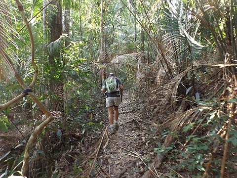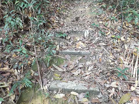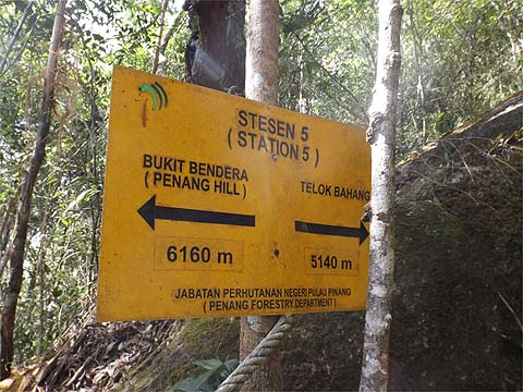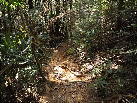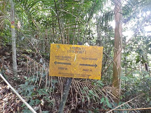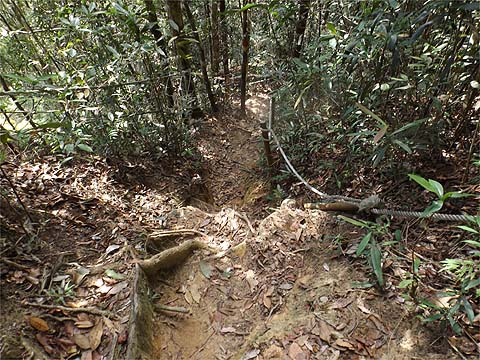We weren't going down! The angle of the sun indicates that this is looking back down a pleasant section. Not all the original station signs were still present, it's clear that there is a zero maintenance policy here after the initial burst of activity which saw the trail inaugurated some time back. It's what they call in the trade 'systematic neglect' and sadly it's a trait that runs right through Malaysian culture. It's the reason many millions had to be spent on upgrading the Penang Hill Railway when almost nothing had been spent on it in the previous 30 odd years.