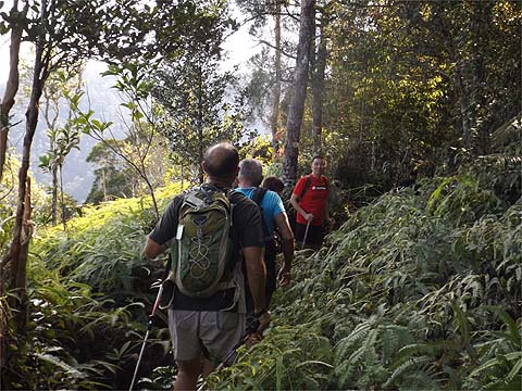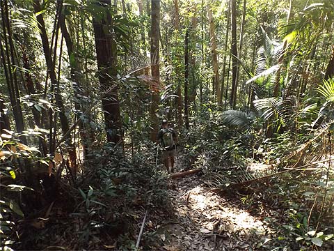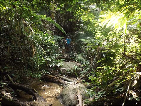 It's unfortunate, because it means that the path has once again got to lose height. As the route is not 'natural', the path is not great, but it was only 10 minutes down until we reached a small stream which represents the head waters of what eventually emerges at Titi Kerawang having traversed the Tiger Hill Valley. There was one last climb ahead.