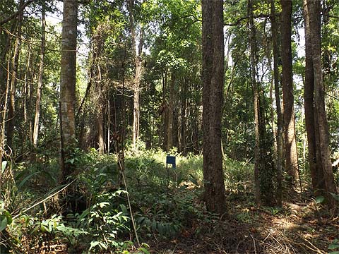 We had to go to the top, it's just as boring as I had been told. However, the way the ridge and the road lie, I'm more convinced than ever that it would be very easy to come up through the jungle from the right place in the farms on the Balik Pulau side, going down was never going to be a serious option. So there it was, job done, the camera went away and almost immediately this gorgeous monitor lizard (biawak) waddled across and vanished...
