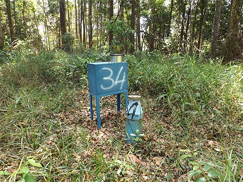 This is one of a series of pages on walking the hills of Penang, click here for the index. This is a Grade 2 walk. There is a sketch map at the bottom showing the route followed. Click here for a list of the known PBA rain gauges. Please visit my Penang buses page for information on accessing the starting point. This account is linked from my Penang Peaks page which lists peaks over 400 metres as well as other places of interest and viewpoints. To find other hikes which visit this peak please check the maps of this are using this link. A few weeks ago, I took a fancy to 'collecting' the PBA rain gauges (RG) which are scattered around the hills above the water catchment areas. They carry numbers which makes life easier and these are, for the most part logical in relation to their positions. Having 'discovered' RG 25 the previous day between RG 24 and RG 26, today I was on the hunt for RG 33 and RG 34 which I expected to find on the ridge leading to Bukit Penara. We needed a gentle day as we are off for the weekend in Taiping, so we caught a 502 bus to the United Hokkien Cemetery in Paya Terubong, there's a bus stop right opposite the northern entrance and that's one of the masts which were our ultimate destination today. We walked up on the right hand side, needing to find some shade on what was a very hot day.