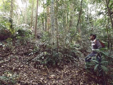 Indeed, it was our target, the top of the durian estate which is actually planted with rubber and fruit trees high up but which are overgrown with ferns at the moment as the trees are too young to be harvested. It would not have been too difficult to get across to the west side here where the path up terminates. The hash trail would have continued down the east side to the final path up from the valley runs - as related by Peter van der Lans, this is totally overgrown at the moment. We looked at it recently and would concur!