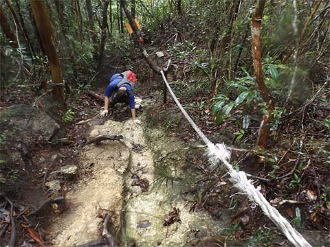 The camera lens was permanently covered in a thin layer of water, these pictures would not stand any enlargement, for the record this is Rain Gauge 12 (RG 12). Rexy realised that I had been serious about our speed (extremely slow) and he was in danger of being late for an evening appointment and turned back to go to the Forest Park at Teluk Bahang. Finally, we came to the main descent, Yuehong knew about it but only in the vaguest of terms.