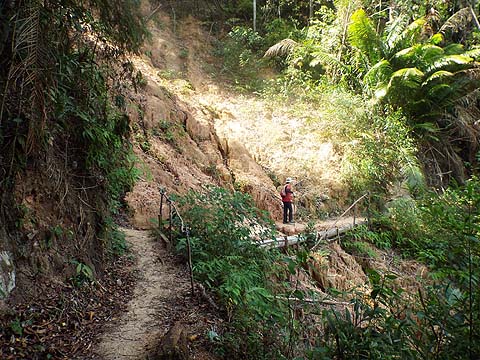 There is (was) a short cut from part way up the concrete road to where rain gauge 28 (RG 28) has been relocated but it seems to be rather overgrown. The initial part of the climb is through former rubber but apart from the outlines of terraces there is no real indication of this.