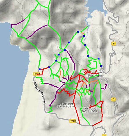 Ahead was a lockable gate and then we were on the last section to Pantai Acheh. If you are going in the opposite direction and the gate is locked, it would be very easy to take the other path and cross over not so far further up.