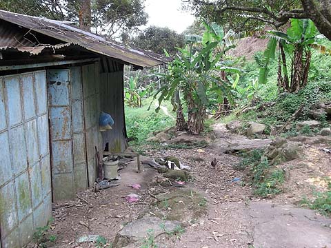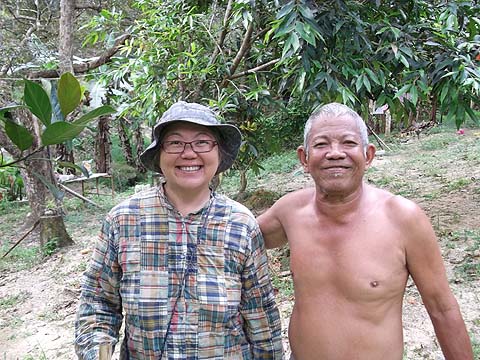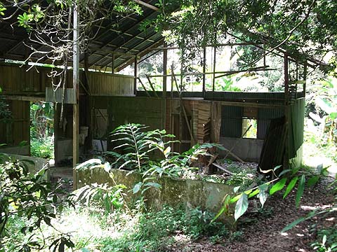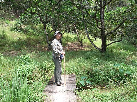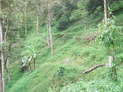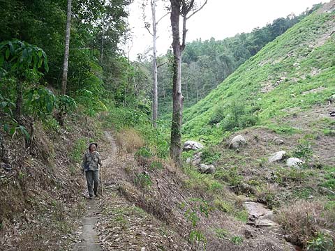 So down we went, into the durians, passing the remains of a house and entering an area which had been cleared for replanting in a less than professional way with some of the gullies badly eroded by the rain.