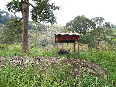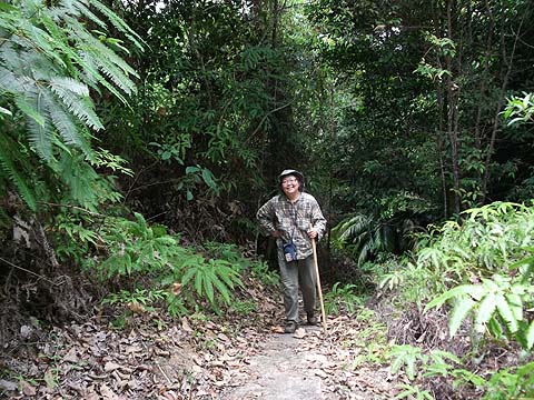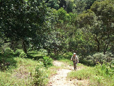 Although we would need to climb eventually, for the time being we had to keep going down. We passed a small shrine and continued, conscious that the path we had followed to Pantai Acheh previously was some way above us.
