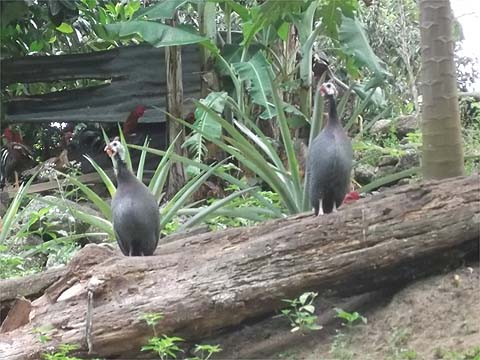 We got to another hut, almost inevitably there was a bird's nest factory here broadcasting twittering noises to attract customers. Less usual were these two farm birds, which looked like Guinea Fowl to me. Anyway if you are coming up this way in reverse, just make sure you take the path to the right at the junction behind Yuehong.