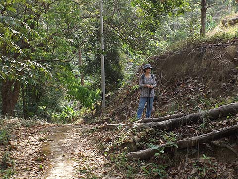We were now in a very well maintained durian estate, instead of taking the valley path straight up, we turned sharp left up the path below (the picture was taken looking back down). .