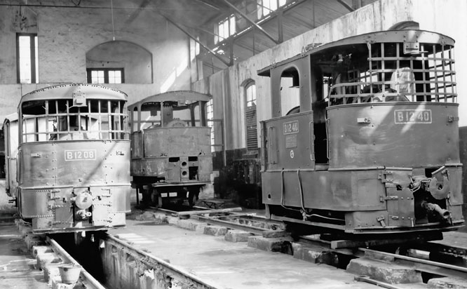 0-4-0Tr tram engines B1240, B1208, B1204 were together in the shed at Wonokromo, Surabaya in 1972. At one time, there would have been a considerable pool of serviceable locomotives but by now it was steadily shrinking. B12s came from Beyer Peacock and Werkspoor, with a few assembled in Semarang. (FJ, ILS collection) |