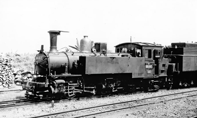 Smallest (and oldest) of the Javan Mallets, the Hartmann and Schwartzkopff built BB10 0-4-4-2T were used on local passenger trains, mainly in the flatter areas of the island. Frank photographed BB1012 at Ambarawa. (FJ, ILS collection) |
