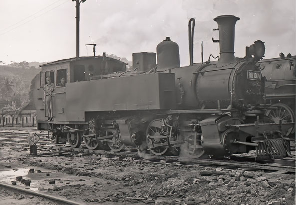 I only ever saw a BB10 in steam once. On 5th April 1977, I was on the Bandung - Yogya day train and when we got to Banjar, B1014 was simmering in the shed yard. There was no time to do more than grab a photograph, it certainly wasn't going out on the now closed Cidulang branch. (RD) |