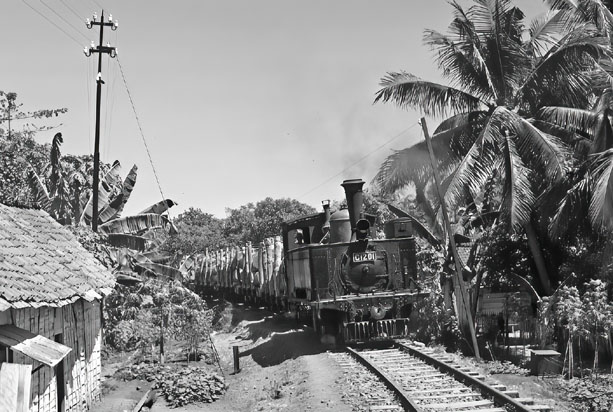 C1201 takes a set of teak logs from the forestry depot on the outskirts of Cepu down to the main line on 1st August 1977. (GD) |
