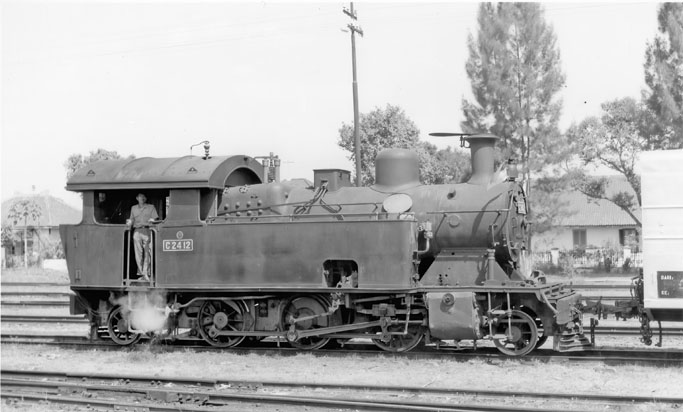 The Werspoor built C24 2-6-2T were generally to be found on the former NIS system in the Central Java area. Early visitors saw them on the line from Yogyakarta north to Magelang and beyond. Frank Jones found C2412 as pilot at Lempujangan. (FJ, ILS collection) |