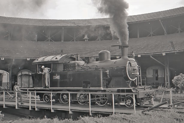 By 6th April 1977, there wasn't much work for them. From its appearance, C2403 on the mixed gauge turntable at Lempujangan had recently returned from a visit to the works at Madiun. (RD) |