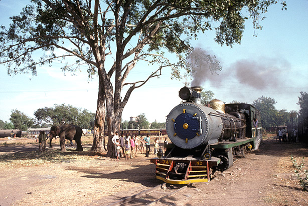 With some 400 route kilometres, Gwalior boasted what was probably the most extensive passenger carrying 2ft (610mm) gauge railway in the world . Here two Jumbos are paired up on 8th November 1978, the steamy one is ND 4-6-4 747. (BM) |