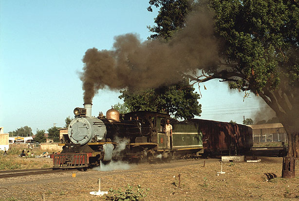 One of the NM (possibly 760 from the lack of steam pipe covers) rounds the south-to-west curve just outside Gwalior station with an afternoon train, most likely this was one for Sabalgarh. (BR) |