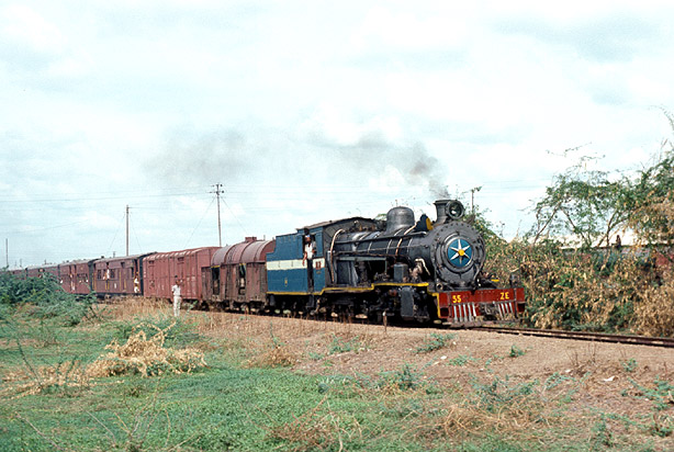 I had a brief stop in Daund on 14th November 1976. Apart from a shed visit, we were able to see ZE 2-8-2 55 leave on 613 Down for Baramati. (RD) |