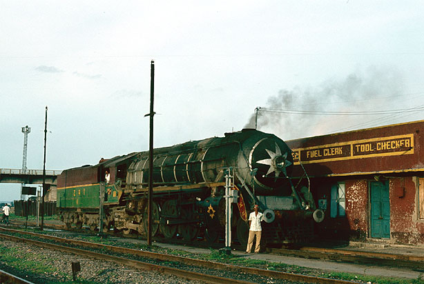 Jan Willem's 1983 SCR odyssey began in earnest with a full visit to the shed at Vijayawada on 16th August. Although the lettering on WP 7006 is in local script, it was in a standard SCR livery of the time. The offices behind include those of the 'Tool Checker' and 'Fuel Clerk', key assistants, no doubt, of the shed foreman. (JD) |