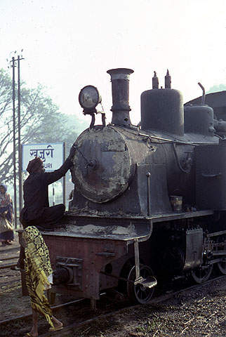 Perhaps it was just as well that 'Rama' was not scheduled to see immediate further service as it's ill fitting smokebox door was being given a seal which appeared to consist entirely of mud (SB) |