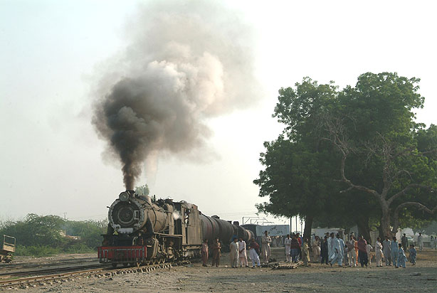 On arrival at Chhor, some shunting was required as the locomotive's supplementary water tanker had been coupled at the back of the other larger ones. (JW) |