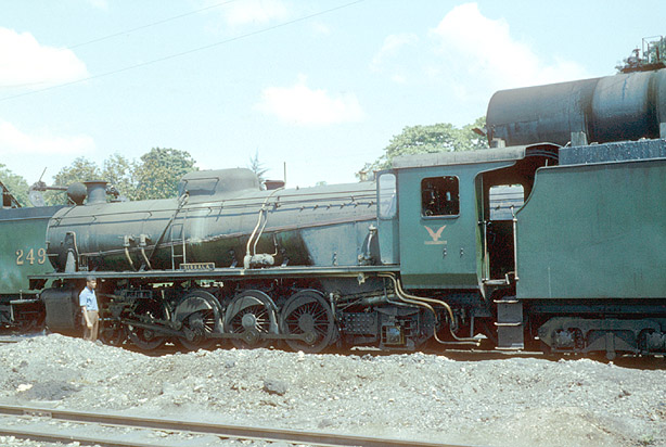 During Jeremy Wiseman's first visit on 10th November 1963, Vulcan Foundry 4-8-2 256 'Sissala' looked a whole lot smarter in what was then the passenger livery, green. (JW) |