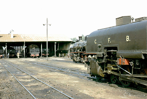 This is the scene in the shed yard at Nova Lisboa. On 22nd September 1974, as can be seen its allocation consisted of a mixture of Garratts and conventional locomotives. (GM) |