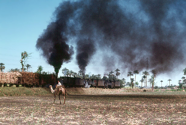 Definitely the sunset of Egyptian steam as the three oil burners, 1123, 1127 and 1134 head off into the distance obliterating the sun with their collective exhaust. (KR) |