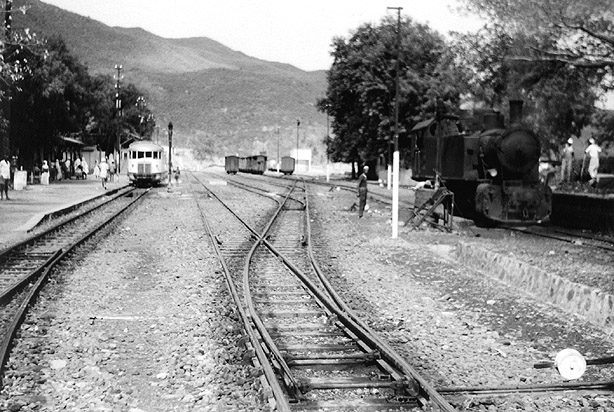 Richard Bowen also paused at Ghinda on his way down to Massawa on 25th July 1969. On the left is a Fiat railcar ('Littorina'), on the right one of the later Mallets. (RB2) |
