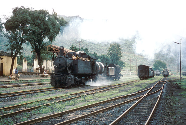 At Ghinda Jeremy was to join the passenger train for Asmara on 7th March 1967. Unfortunately, the weather was none too kind as 442.57 went about its business assembling its water train in the gloom. (JW) |