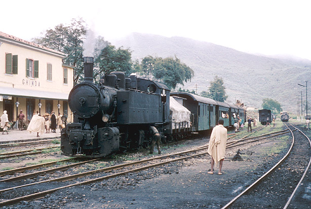 Massawa on the Red Sea even in March will have been one of the hotter places on the Planet. Not surprisingly, well into the mountains and with a cover of low clouds many of the passengers were beginning to feel a little chilly in comparison. (JW) |