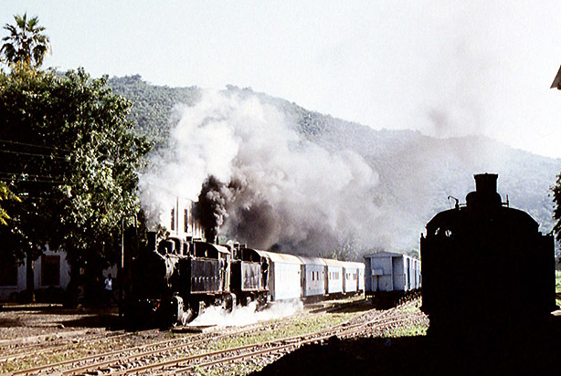 The last section to be reopened was between Nefasit and Embatkalla. 442.54 and 442.55 performed a dummy departure for Asmara from Ghinda on 4th December 2000. The section of track from here to Embatkalla had been in place for a while but seemed not to have been brought up to operational standard. (HH) |