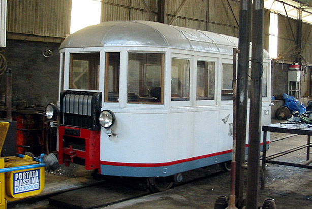The railway owns some classic pre-Second World War railcars. This one, effectively an inspection vehicle, was at Asmara on 29th November 2002. I missed seeing it outside as I was demonstrating a version of this CD-ROM to enthralled railway staff, one of whom appears in a Jeremy Wiseman photograph. (RD) |