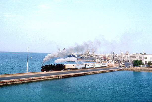 The adjacent Dahlak hotel is probably not the best in Massawa but it has a balcony with a marvellous view of the port area and at the right time of day you can sip the local Asmara beer (the former Melotti beer) between runpasts. This is 442.54 and 442.59 on 24th November 2002. (RD) |