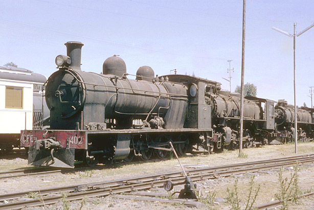 More properly known as the Chemin de Fer Éthiopien (CFE), the railway shows great French influence. This 2-8-0, 402, was built by Société Alsacienne de Constructions Mécaniques, Belfort in 1927. (JW) |