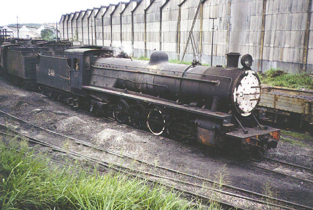 A slightly different (and lighter) series of 4-8-2s was introduced in 1936 intended for the Accra - Kumasi line. 241 (Nasmyth Wilson, 1627/1936), at one time 'Fort Orange', was in steam at Location Works on 1st April 1976. (MC) |