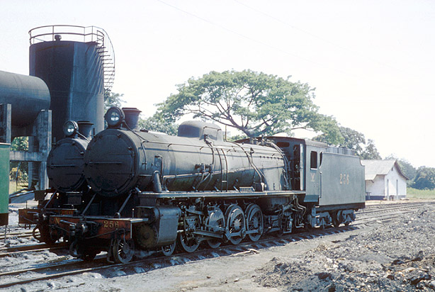 These were the predecessors of the 'modern' 4-8-2s which made their appearance in 1951 and were the last steam locomotives delivered here. 256 'Sissala' (Vulcan Foundry 5927/1951) was at Accra on 10th November 1963. (JW) |