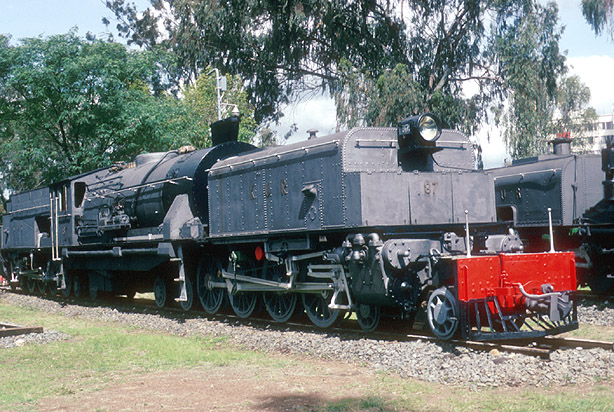 A lasting monument to steam is to be found in the Nairobi Railway Museum although the condition of 5711 (KUR 87) has deteriorated since this picture was taken on 17th November 1979. Of course, the Giesl ejector is inappropriate for this livery! (RD) |