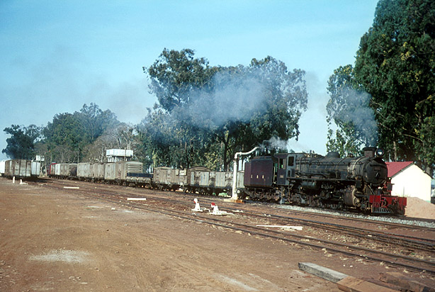 Thika was made famous by the book 'The Flame Trees of Thika', although it is actually a small, sleepy town on the edge of the highlands. 3115 'Banyankore' was there on a freight train on 3rd February 1971. (TB) |