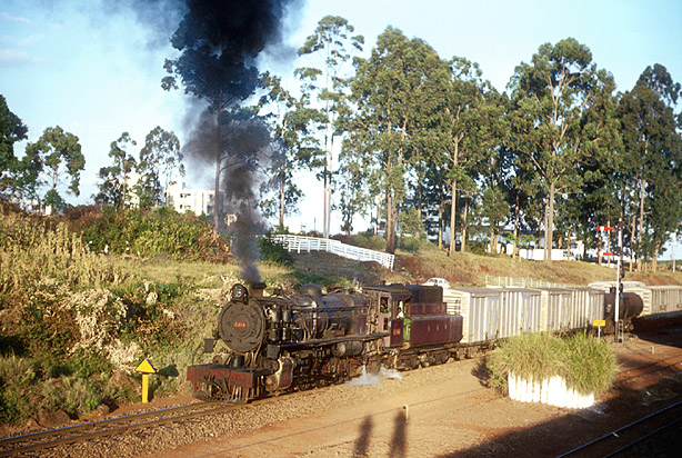 The shadows lengthen as 2914 departs from Kibera on 29th September 1972. Compared to the Garratt hauled 14.50 train shown later in the sequence, there was limited time available for this train before the light failed altogether. (TB) |