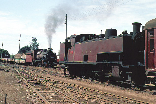 The 13 class did not look at all modern and this is reinforced by this view of 1312 shunting empty stock with 2439 waiting to depart on a ballast train on 25th November 1976. (MC) |