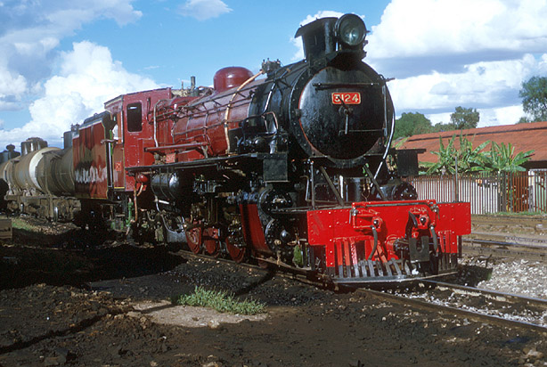 The 31 class 2-8-4 were built by Vulcan Foundry and were the lightest of the post Second World War tender locomotives and were found all over the system. 3124 'Chope' at Nairobi on 20th April 1973 had very clearly had the benefit of a full and recent overhaul and was waiting despatch to its home depot. (CW2) |
