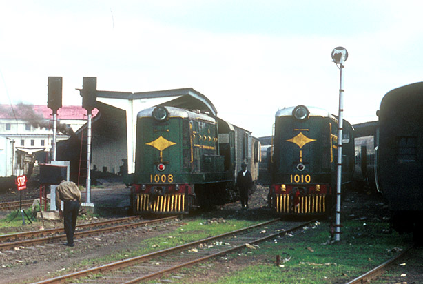 This is a detail of a picture used earlier in this section. The two 10xx series diesels seen here are of some nostalgic interest to me and other British enthusiasts in that they are directly related to similar English Electric first generation main line diesels. (DM) |