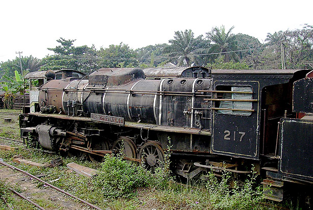 Accurate reports of steam survivors in West Africa have been conspicuously absent from the railway press in the last two decades. However, in January 2002, Graham Roberts was at Ebute Metta and recorded 2-8-2 217 'River Swashi'. (GR) |