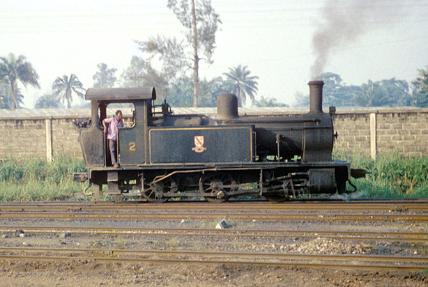 Smallest of Nigeria's steam locomotives which survived till the 1960s was 0-6-0T, 2 a Bagnall product (2332/1928). It was at Ebute Metta Junction on 22nd November 1963. (JW) |