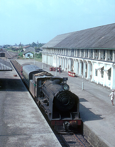 North of Lagos Terminus is Denton Causeway which (together with landfill) effectively makes Iddo Island part of the mainland. This link is made at Ebute Metta where Nasmyth Wilson 4-6-2 413 had been turned out for the monthly pay train in the impressive station in January 1967. (CS1) |