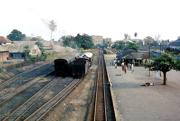 This is a general view of the platform area at Ebute Metta with River class 160 'River Yobe' as pilot on 21st November 1963. (JW) |
