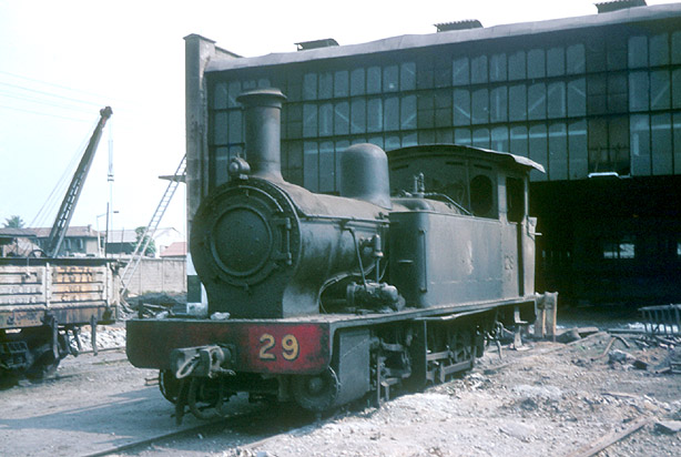 A number of the small Bagnall 0-6-0T survived long enough to be photographed at work. 29 (2311/1928) was at Ebute Metta in January 1967. (CS1) |